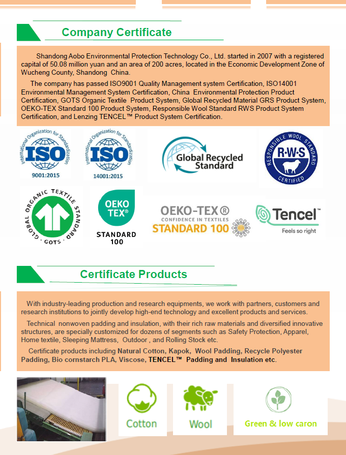With industry-leading production and research equipments, we work with partners, customers and research institutions to jointly develop high technology and excellent products and services, our certificate technical padding products including: