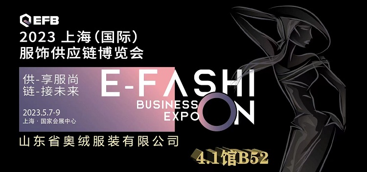 山東奧絨服裝有限公司/山東奧博環(huán)??萍加邢薰?- 2023年5月7號至9號 上海國家會展中心 展位號:4.1館B52
