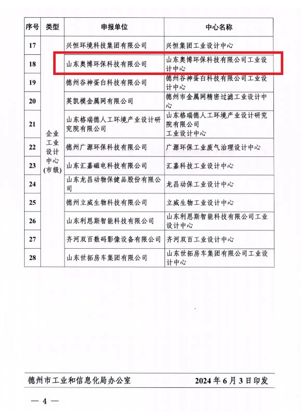 近日,德州市工業(yè)和信息化局公布德州市市級工業(yè)設(shè)計中心的企業(yè)名單,我司申報的工業(yè)設(shè)計中心【山東奧博環(huán)??萍加邢薰竟I(yè)設(shè)計中心】成功入選!
