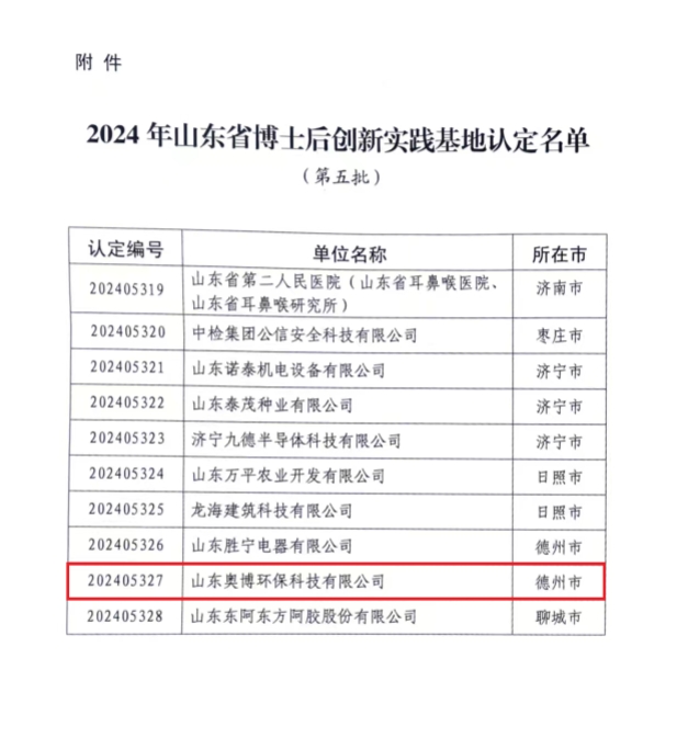 根據(jù)《山東省博士后創(chuàng)新實(shí)踐基地管理辦法》(魯人社字〔2020〕91號(hào))有關(guān)規(guī)定,認(rèn)定山東奧博環(huán)保科技有限公司為山東省創(chuàng)新實(shí)踐基地,授予“山東省博士后創(chuàng)新實(shí)踐基地”牌匾。